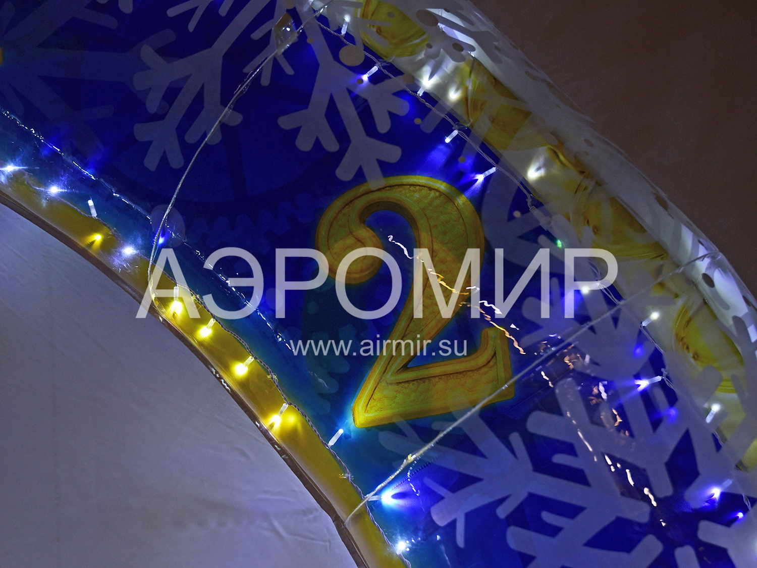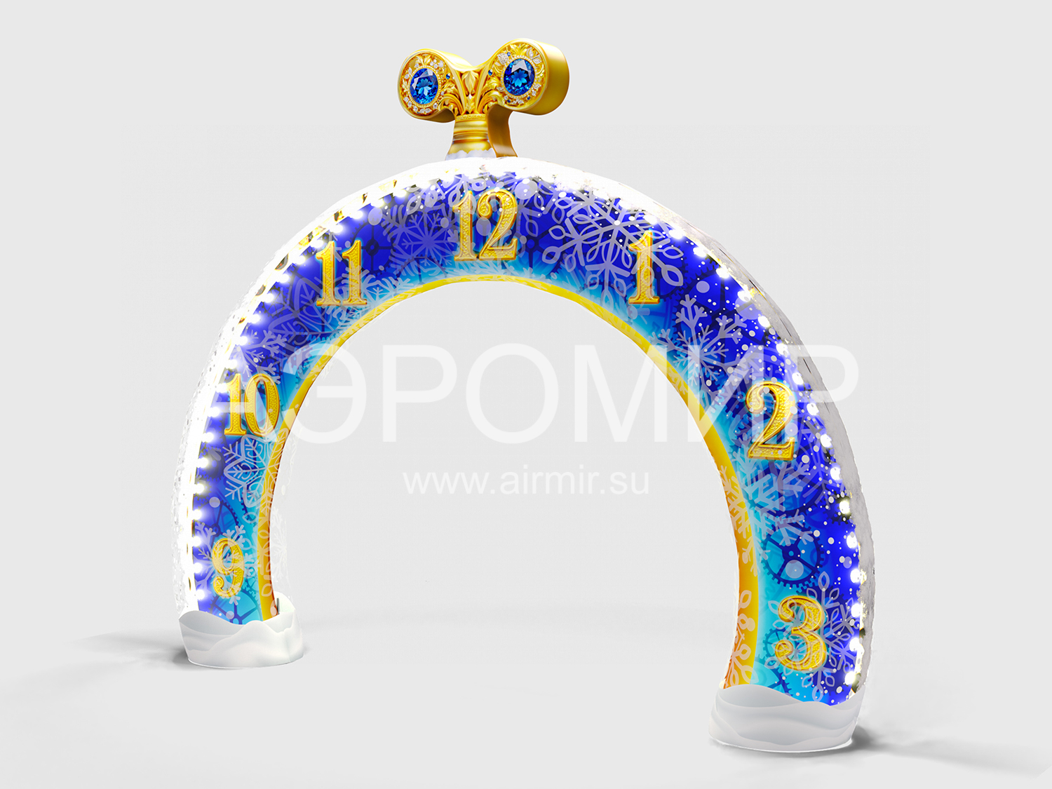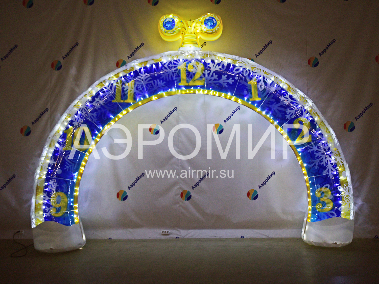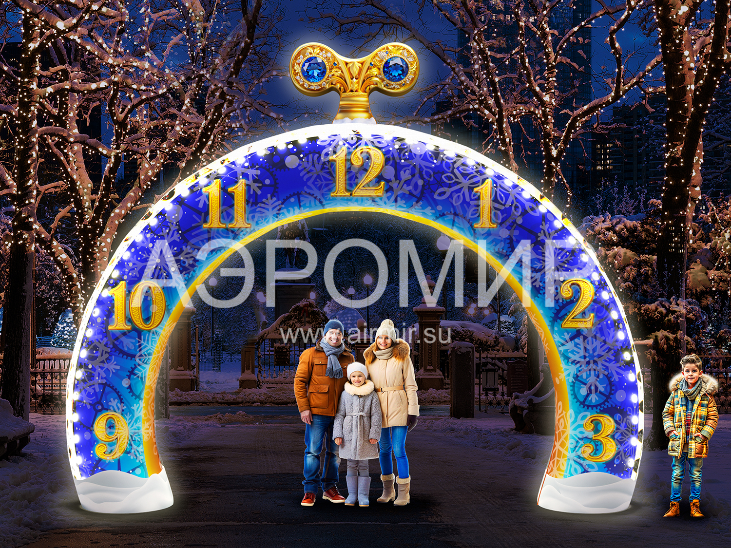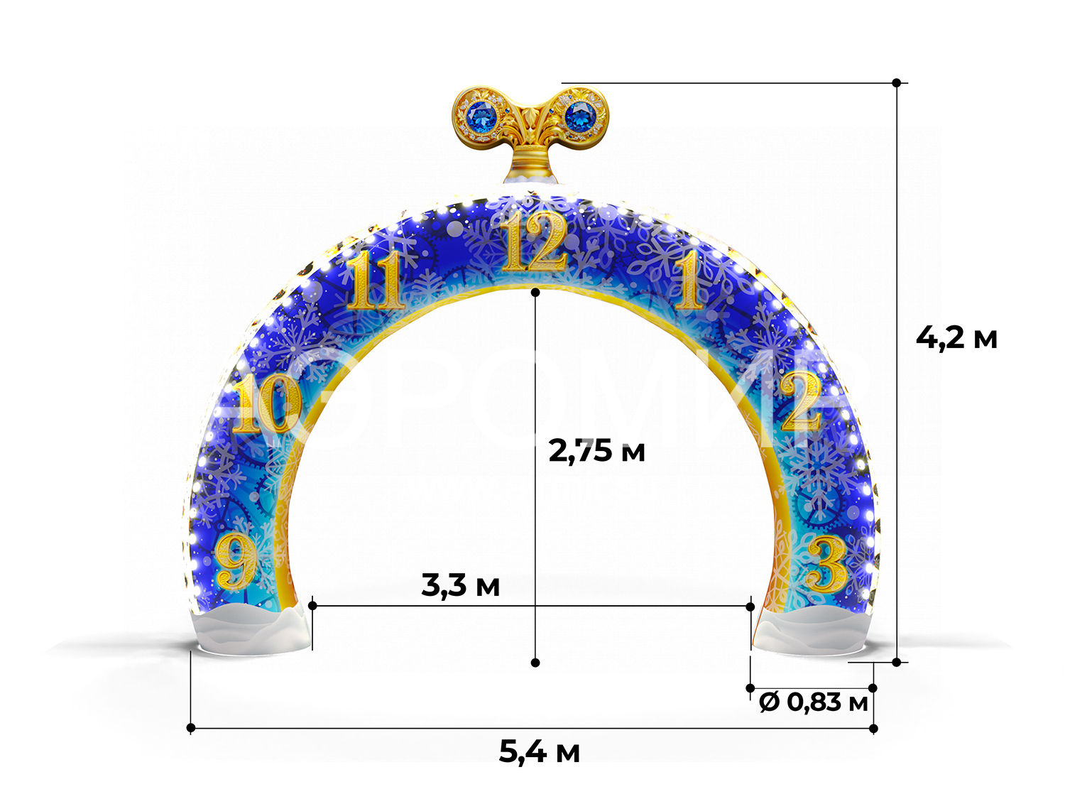 Прочный Оксфорд 300D с красочной фотопечатью новогодних часов добавит праздничного настроения. Опциональная подсветка сделает арку заметной даже ночью, привлекая внимание и создавая волшебство.