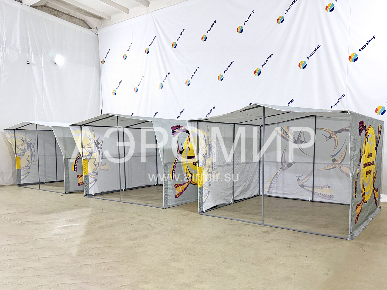 Палатка на каркасе для рекламных и промо целей. Выполняем индивидуальное брендирование, наносим логотипы и слоганы. Прочный и надежный металлокаркас. Мобильна и проста в уходе. Изготовим в короткие сроки, доставим в любую точку.