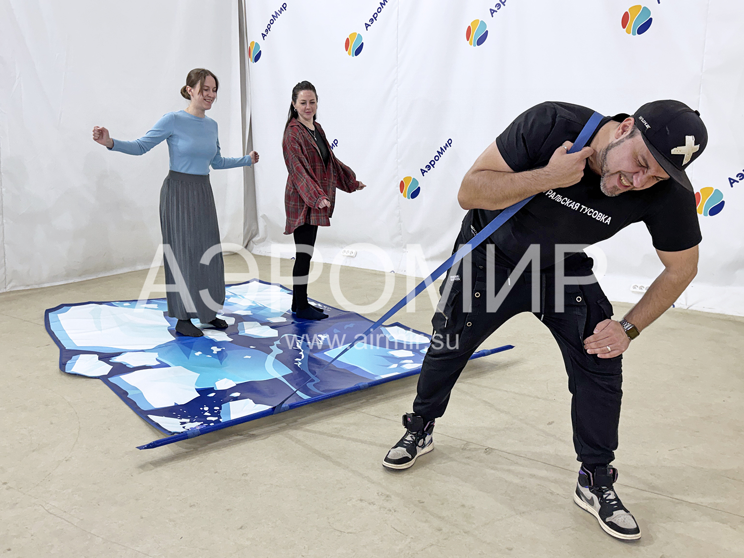 Это простой, но очень веселый аттракцион. Полотно с ярким сектором посередине и ручкой. Один из участников тянет за ручку, задача всех остальных - синхронно подпрыгивать, давая возможность «ковру» продвинуться вперед. Условия игры можно усложнить, поставив еще одну задачу: не приземляться за пределами центрального сектора. ВНИМАНИЕ! Указана цена за 1 штуку.