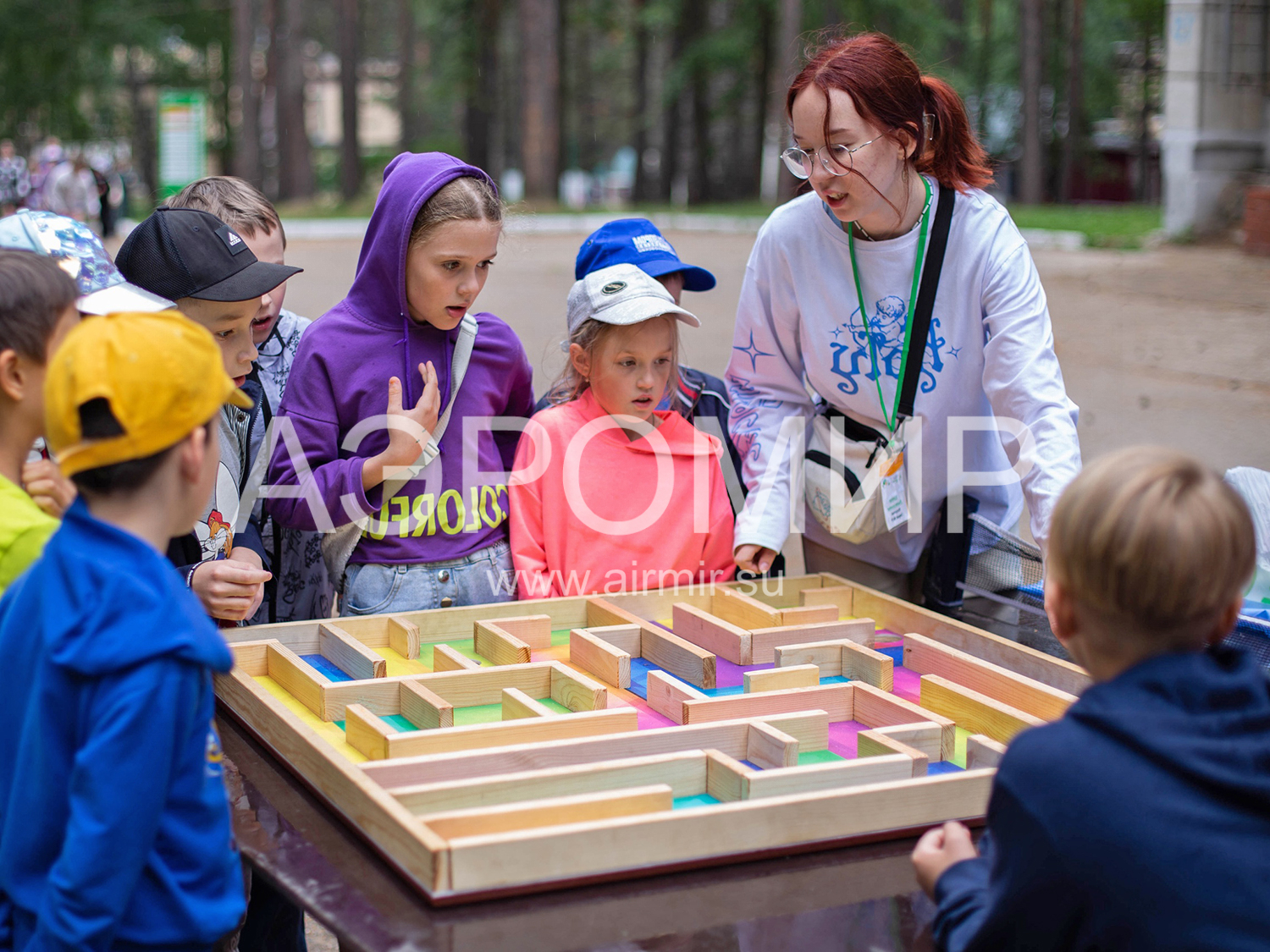 Цель этого внешне простого аттракциона - общими усилиями держать «стол» и, меняя угол его наклона, перемещать шарик по лабиринту, чтобы загнать его в итоге в лунку. Таким образом, играя в «Лабиринт», участники учатся действовать сообща, вырабатывать стратегию и тактику поведения своей группы.